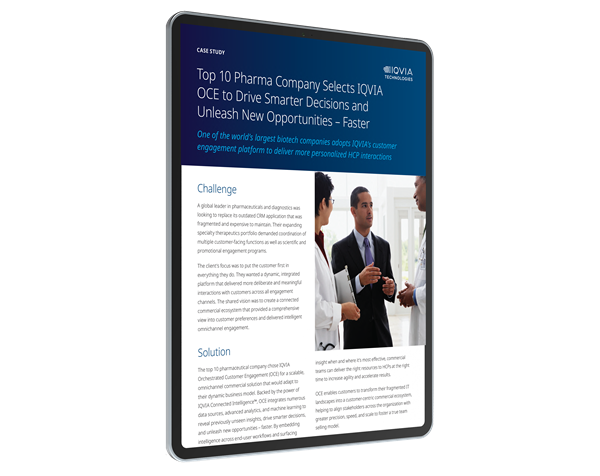 IQVIA Orchestrated Customer Engagement (OCE) embeds real-time intelligence into user workflows so commercial teams can personalize and optimize HCP engagements.