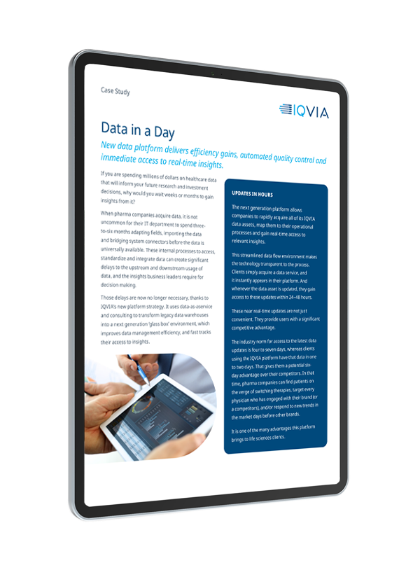 Adaptation and transformation require intelligent “molecule to market” solutions that deliver the speed, flexibility, and agility needed to evolve at the speed of change.  By seamlessly connecting people, data, analytics and technology, IQVIA helps you accelerate the journey from data to insights to action so you can unleash new opportunities faster.